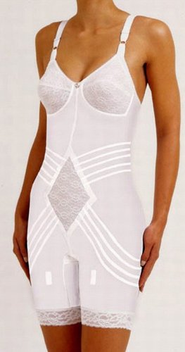 - Exclusive contour bands for shaping waist, hips, back and derriere. Gripper stretch lace bottom eliminates thigh bind.